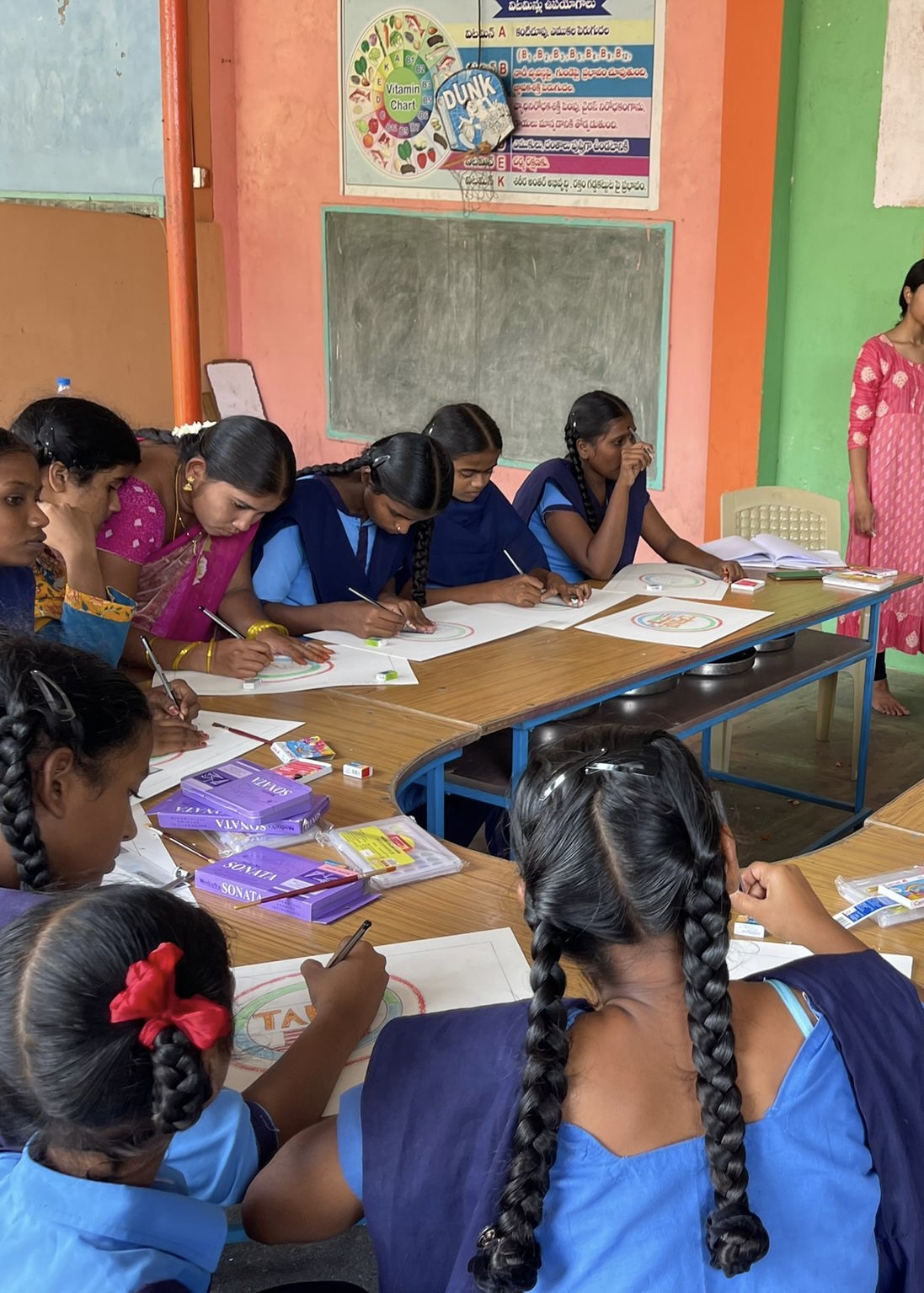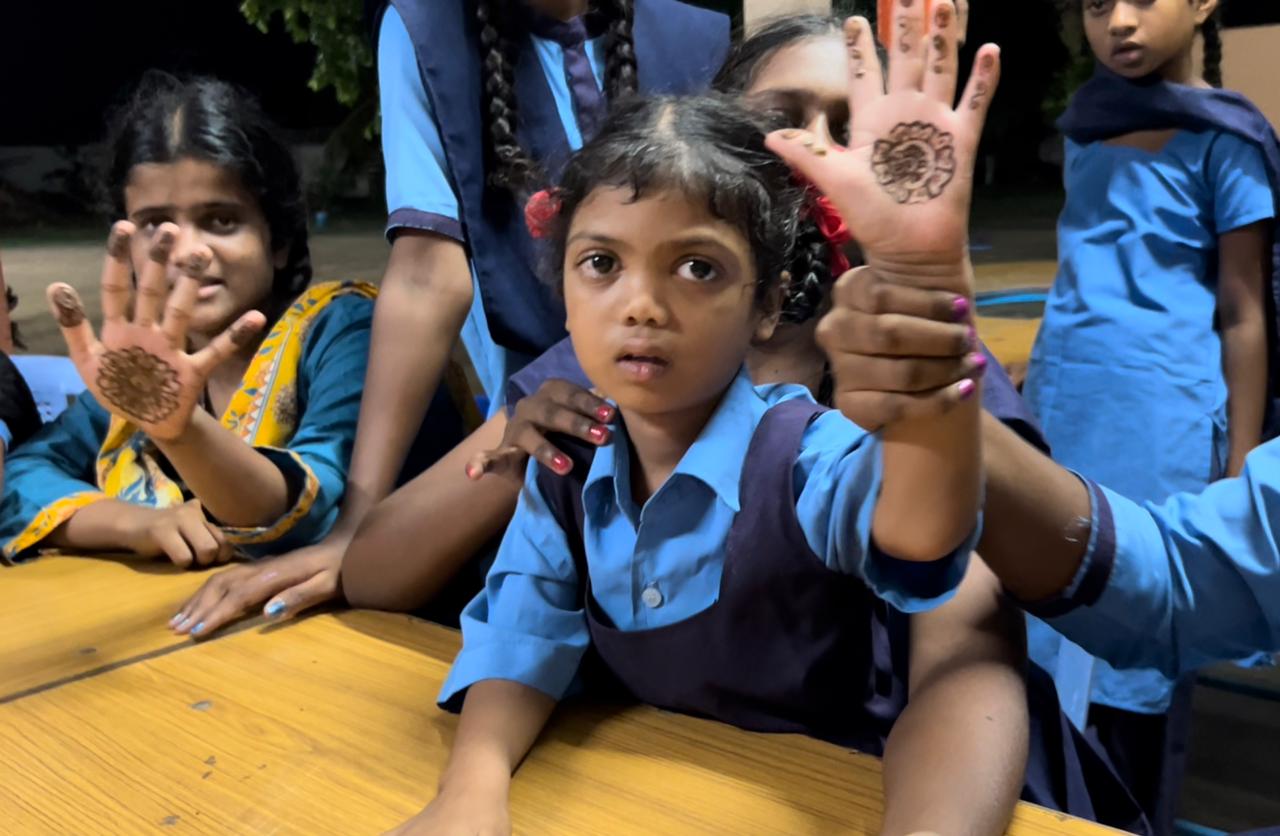 Organized and distributed 100 art supply kits for Chaitanya Mahila Mandali homeless shelter. These kits included drawing pads, watercolor paints & brushes, crayons, pencils, erasers, and rulers. The goal of this project was to provide an outlet for these children to explore their fine arts education, which was severely limited and overlooked. During our event, our team led a drawing lesson, provided dinner, and gave henna tattoos to the children.